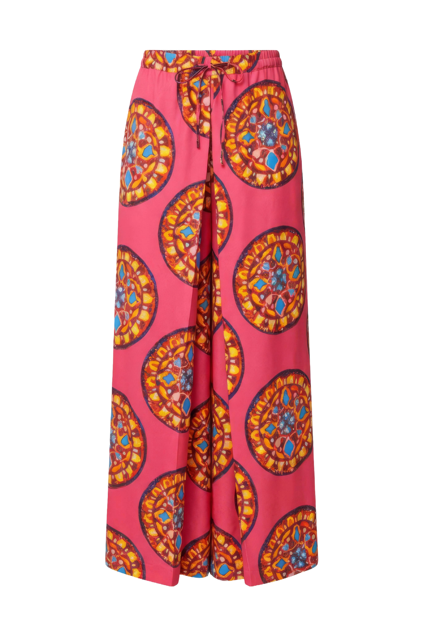 The Kipos Dyo Split Skirt Loulou features a classic straight cut. This piece is elevated by an intricate pleat in the front that imbues the garment with graceful movement, giving these pants the flowing nature of a skirt. An elastic waistband with a drawstring ensures easy wear, comfort, and adjustable fit. The skirt is fashioned from a light and flowy viscose fabric.