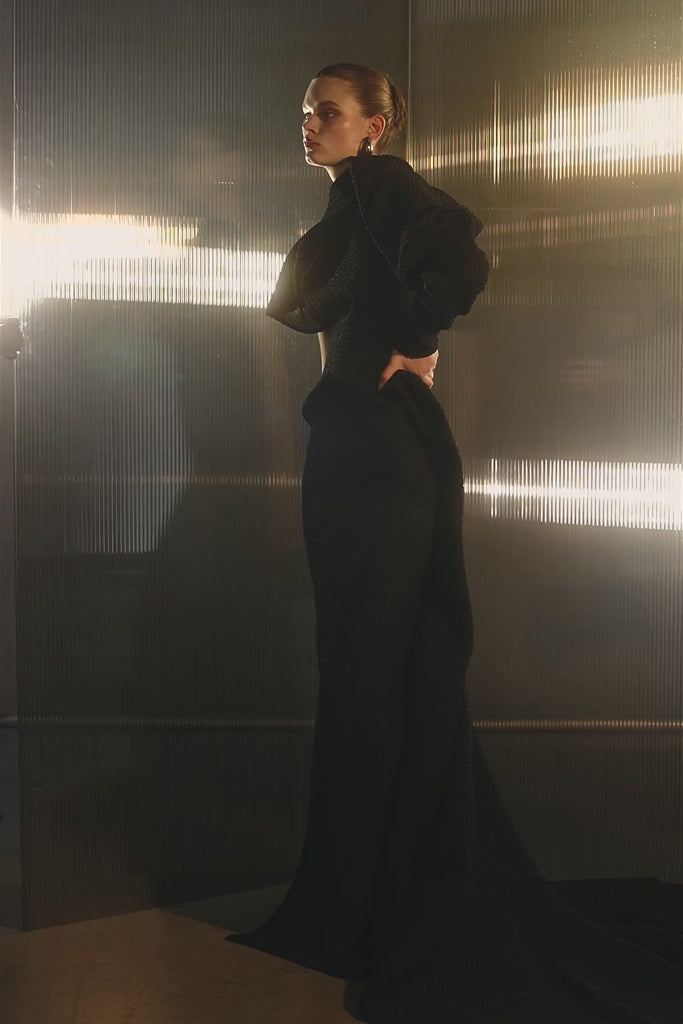 Lyra Gown in Black Waffle